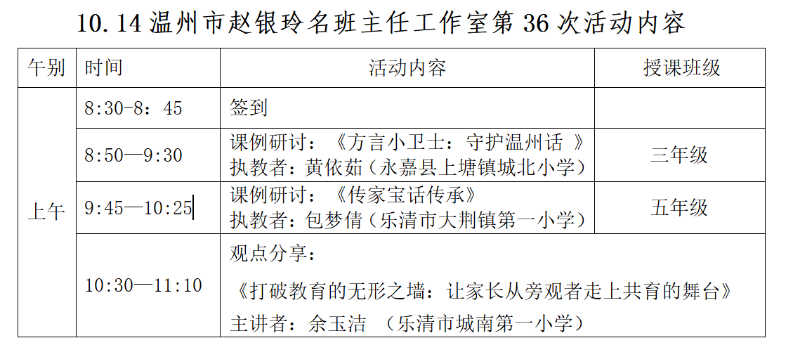 关于举行温州市赵银玲“名师送教”工作室第36次活动的通知