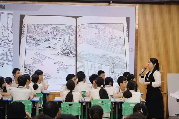 与此同时,章叶和老师也为学生们带来了一堂别开生面的版画课程《木刻新韵》。她通过三个探究任务,引导学生们初步体验版画创作的乐趣,最终学生们以小组合作的形式完成了精彩的文创作品。章老师的课程不仅让学生们领略了传统木刻版画的魅力,更激发了他们对温州时代印痕的创新思考。章老师还为大家带来了精彩的讲座《初中版画单元整体设计与实践》,她通过项目式的跨学科融合,创新材料和学习情境,将德育教学与多元化评价相结合,为学生们提供了一个全新的版画学习体验。