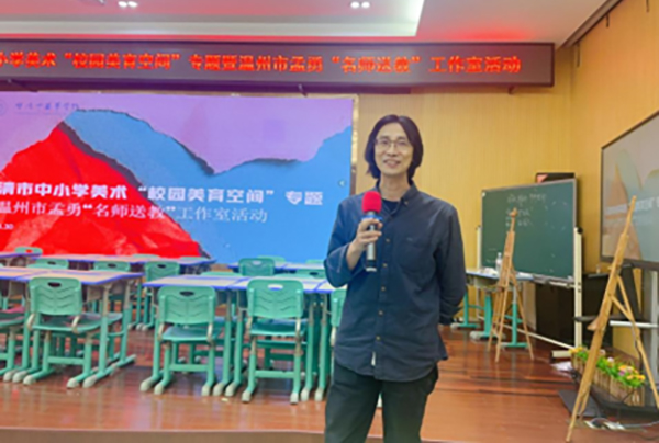 为深化义务教育课程改革、进一步拓展和丰富我市校园美育空间,温州市孟勇工作室“名师送教”活动于2024年4月30日在乐清市英华学校举行。此次活动以“校园美育空间”为主题,工作室成员和乐清市的中小学美术骨干教师联合参与此次活动。