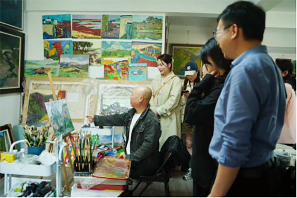 下午朱源生老师继续带来《油画写生与创作》专题讲座。在讲座中,朱老师不仅讲解了油画写生的基本技巧、色彩运用规律,还分享了创作灵感的捕捉与转化方法。他现场展示了多幅优秀油画作品,从构图、笔触、情感表达等方面进行细致解读,让工作室成员对油画艺术有了更深刻的认识。在互动环节,教师们积极提问,朱老师耐心解答,现场氛围热烈,学习热情高涨。
