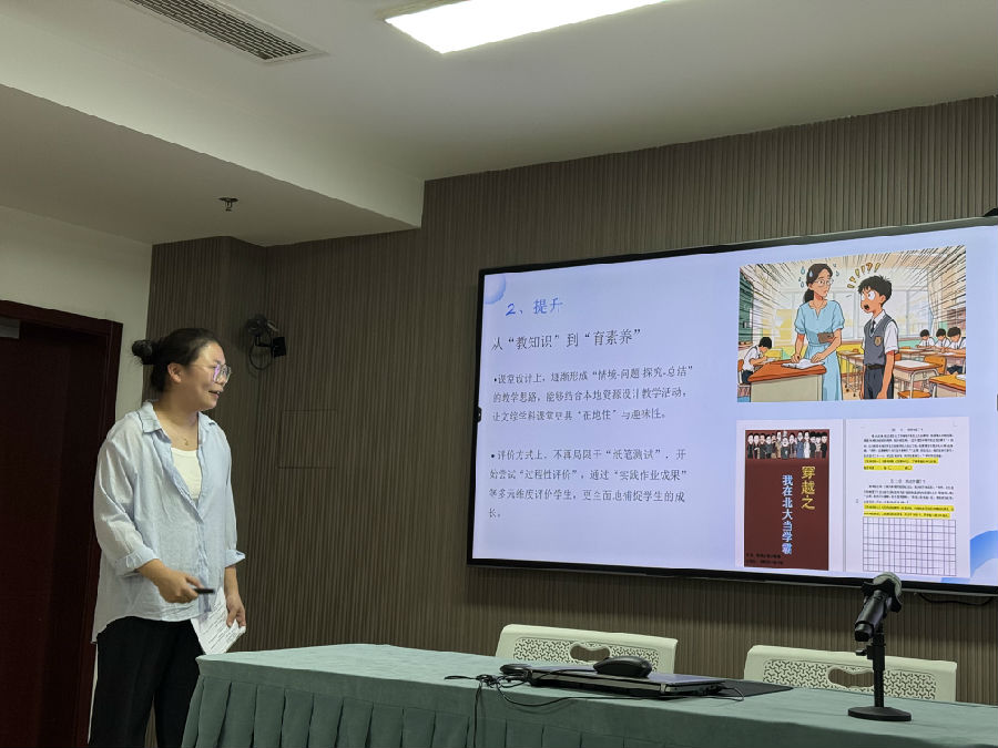 紧接着,四位学员代表依次登台,以阅读心得、教学观点、培训心得的形式分享成果,生动展现工作室培育下的专业蜕变。