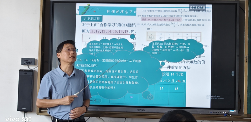 聚焦核心素养,落实育人目标。 整场讲座,胡明雷老师始终将“如何通过破解疑点堵点来培养学生的数学核心素养”作为落脚点。他强调,教师对教材的每一次深度剖析,都是为了更好地培养学生的抽象能力、推理能力、模型观念和应用意识,让数学课堂真正成为学生思维生长的沃土。