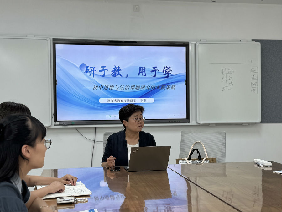 浙江省教育厅教研室李荆老师带来专题讲座,围绕 “初中道德与法治课题研究的实践策略” 展开分享。她结合自身丰富经验,提出课题研究要抓 “小切口、真问题”,研究过程需 “理实结合、步步扎实”,成果提炼要 “聚焦素养、突出创新”。通过鲜活案例的剖析,李老师将抽象的研究方法转化为可操作的实践路径,让学员们对课题研究的全流程有了更清晰的认知。