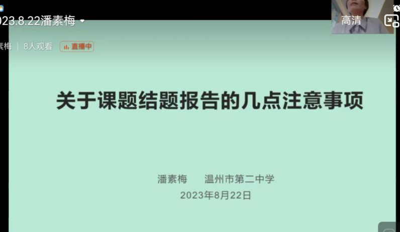 为了提高学员的教科研能力,做好专家引领,帮助工作室4个课题组更好地完成结题报告的撰写,2023年8月22日,工作室在钉钉线上开展“规范结题报告撰写与修改”活动。