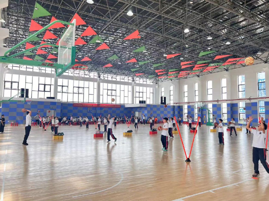 第二节课由龙湾二小黄赐杰老师执教《篮球:运球+传接球的多种练习方法1》。黄老师将专业篮球训练道具融入课堂,让各个环节的练习效率显著提升,运用比分牌计分作为小组评价的展现,激发了学生参与课堂的积极性。最后的小组4V4对抗赛将篮球规则、篮球裁判法等融入课堂中,逐步提高学生篮球运动水平及意识,确保核心素养的落实。