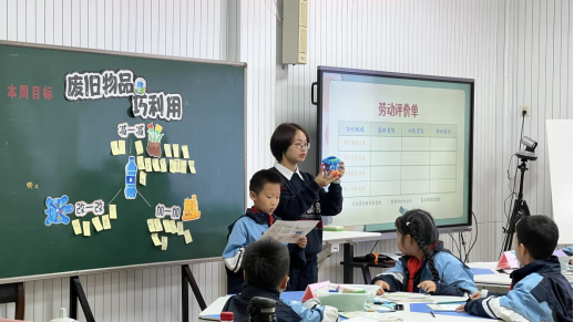 首先,温州湾实验小学的张丽老师带来了劳动课《塑料瓶大变身》的课例展示。张老师通过生动有趣的教学活动,引导学生将废旧塑料瓶进行创意改造。这一过程不仅培养了学生的环保意识和动手能力,还将环保理念与劳动实践完美结合,激发了学生的创造力和想象力。课堂氛围活跃,学生们积极参与,充分展示了劳动教育的魅力。