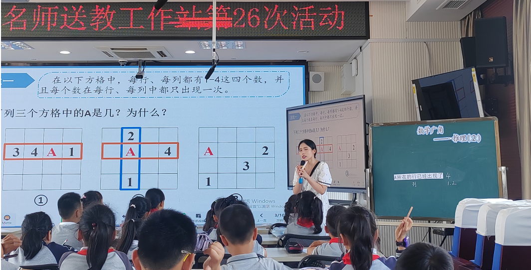 在具备一定基础的前提下,如何通过文化背景激发推理策略?乐清市晨曦路小学的胡希贤老师带来《推理二》,以学生的现有经验为起点,引导孩子们自主解读规则,并分享个人的理解。在交流过程中,孩子们能够发现解决问题的策略,并用数学语言阐述自己的推理过程。胡老师将课程内容划分为三个任务环节,每个环节展示三幅图,鼓励孩子们进行探索。在第二个环节,孩子们需要填写一个数字,并推导出A的结论;第三个环节则是完成一幅正负对比图。课堂上,老师将时间交给学生,为他们提供语言表达的辅助工具,例如,从哪里开始填写,然后继续填写哪些部分。通过这样的教学方法,学生学会用数学的视角观察世界,用数学的逻辑思考问题,用数学的语言进行表达,使得这三种能力在课堂上得到真正的实践。