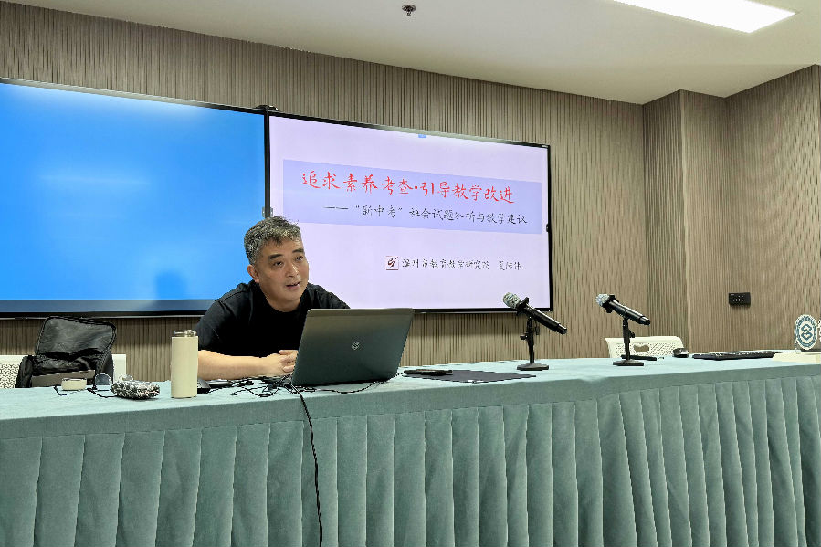 下午,温州市教育教学研究院夏陈伟老师作《基于新中考命题导向的教学改进》专题讲座,夏老师对2024年、2025年浙江省中考社会卷的结构,从知识维度、能力维度、价值维度一是知识结构方面,重视基础知识理解,重视结构化与大概念的考查;二是能力结构方面,注重基础能力的考察,适当考查高阶思维;三是价值立意方面,情镜创设指向真实情境的问题解决。四是分析试卷题型呈现方式的变化与学科主题分值的变化,为教学提出切实的建议。整场讲座案例翔实、分析透彻,为教师把握改革脉搏、优化教学策略提供了坚实支撑。