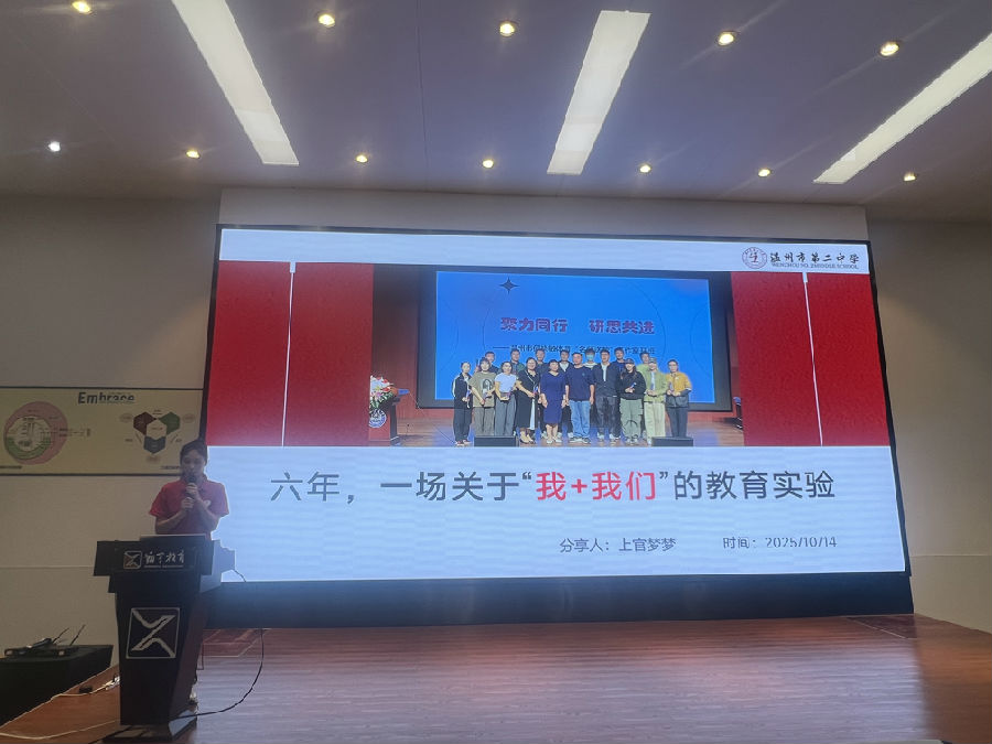 上午8:50开始,两场精彩的讲座展示拉开活动序幕。潘祖达老师作《体育十年》主题分享,从自己的从教经历出发,深入阐述了体育教育在提升学生身体素质、培养意志品质、塑造健全人格等方面的长期价值,为体育教师挖掘体育育人的深层内涵提供了新视角。上官梦梦老师的《六年,一场关于“我+我们”的教育实验》,则通过自身六年的教育实践案例,分享了在体育教学中如何构建师生、生生之间的协作共同体,实现从“个体成长”到“群体发展”的教育突破,其鲜活的故事与深刻的思考引发在场教师共鸣。